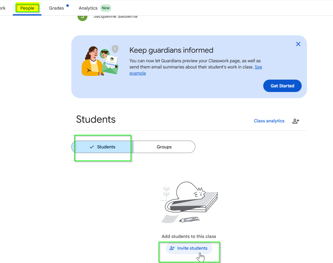 - Your class list updates to show the names of invited students.