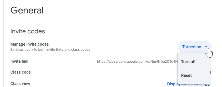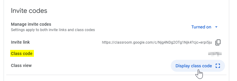- (Optional) To copy the code so you can paste it into an email, under General, next to Class code, copy the code.