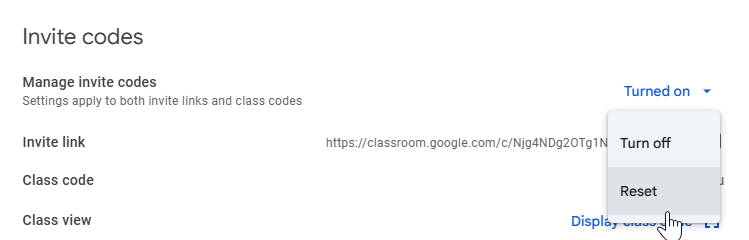 When you reset or enable invite codes, Classroom creates new invite codes. The previous codes won't work.