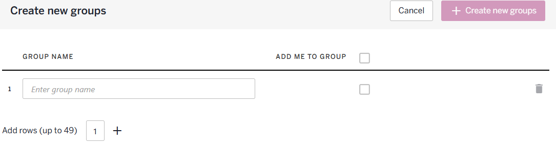 - If you select Multiple The Add Groups section contains the Group Name field. Click +Add Row to add up to 49 groups at a time.