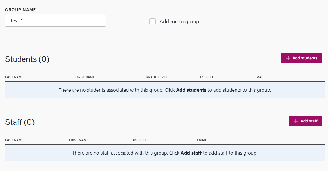 *IMPORTANT* The student rosters created for the groups will have to be manually managed by the school and newly enrolled students will need to be added to the groups. These groups will not be updated automatically.