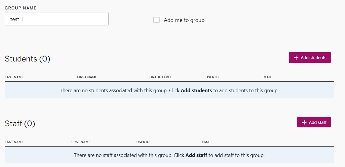 Make any edits to the group as necessary in the Group Info, Staff, and Students sections.