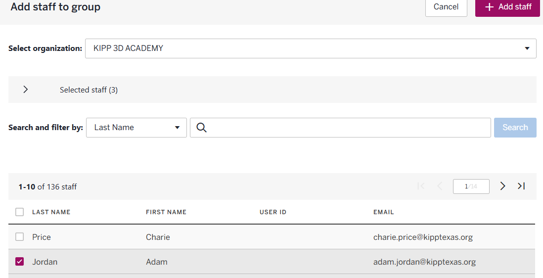 *NOTE: IF YOU DO NOT SEE THE USER IN YOUR STAFF LIST, PLEASE CONTACT THE ED TECH APPLICATIONA DEPARTMENT VIA ZENDESK TICKET.